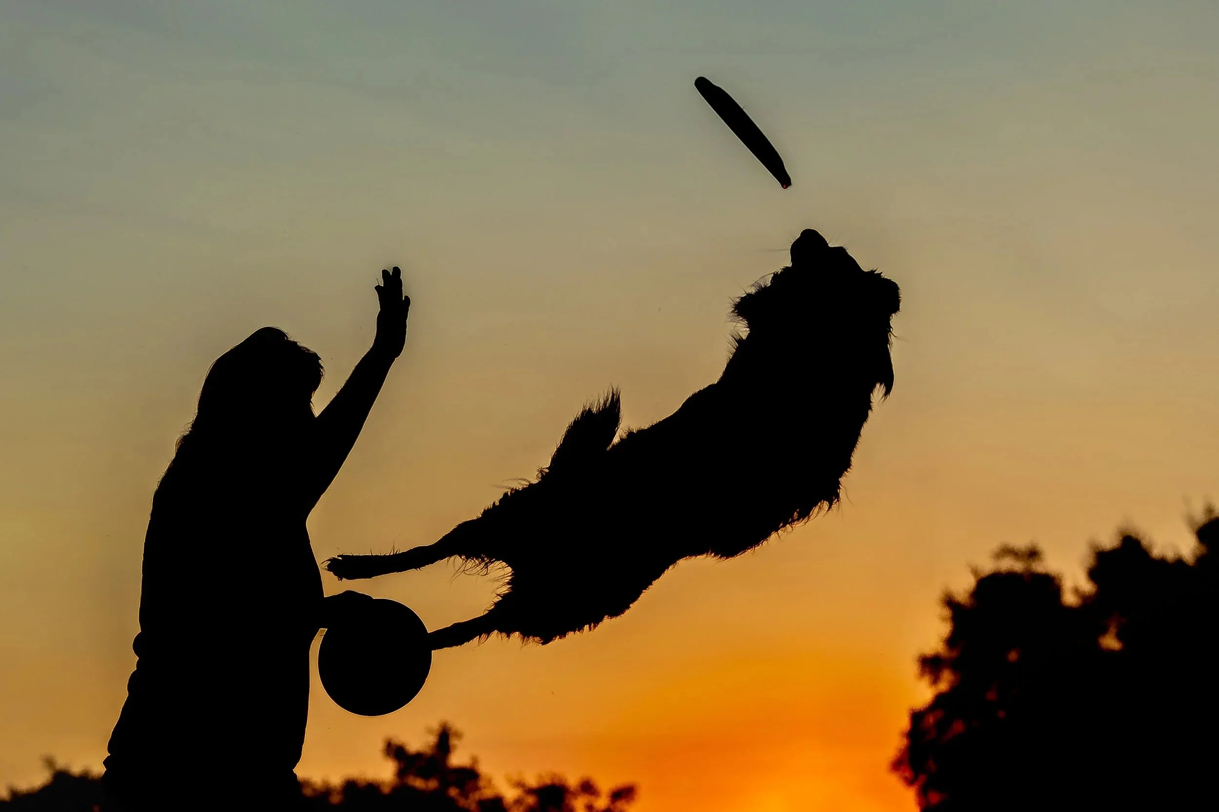 1 fully edited silhouette action image at sunrise or sunset per dog, digitally delivered. Prints available as add-on.