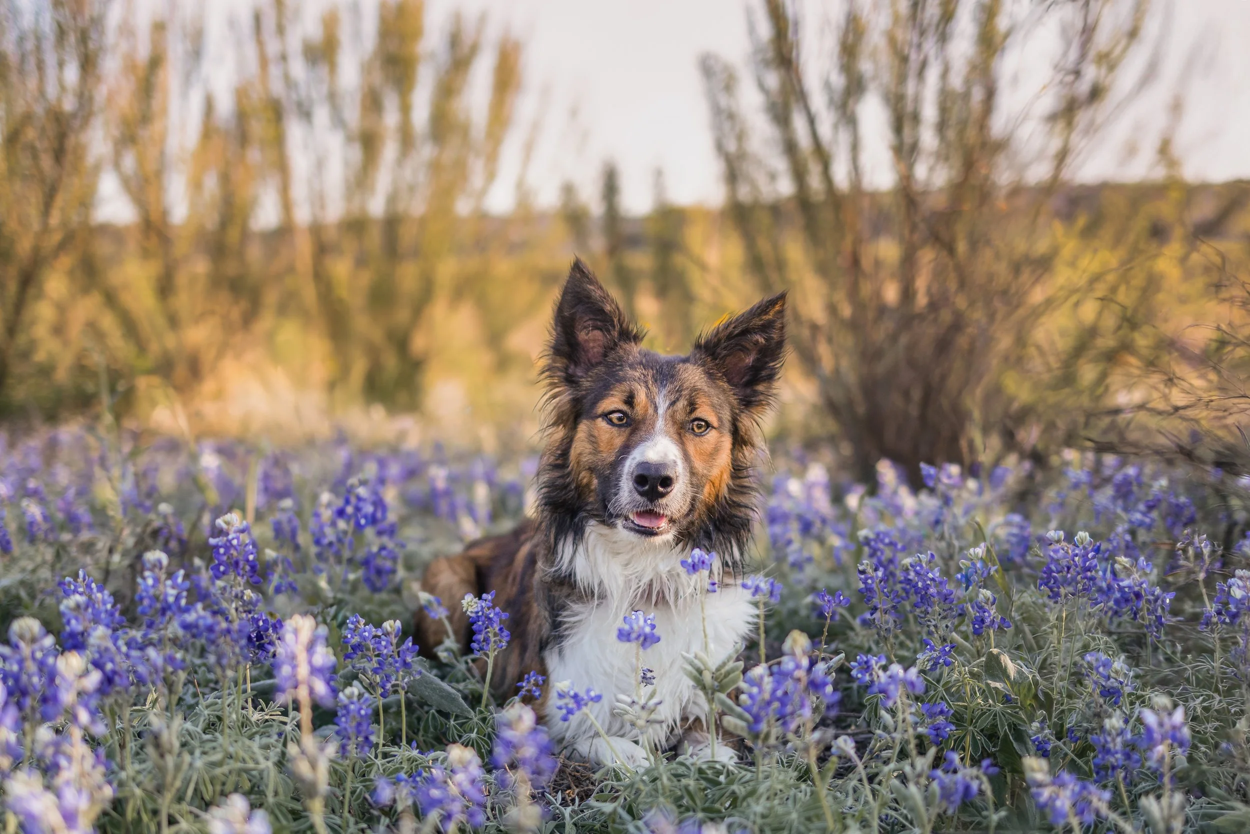 Your wildflower session is an outdoor portrait experience in the Texas Hill Country or Austin-area bluebonnet fields. Sessions are low-stress and designed around your dog's personality and needs.